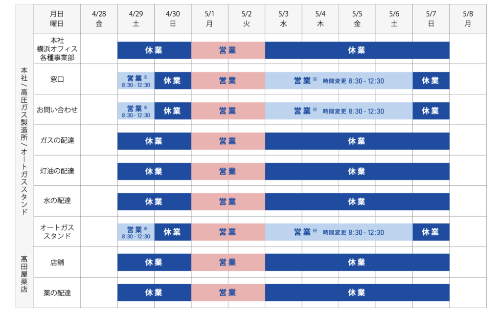 2023_GW期間中の営業時間表